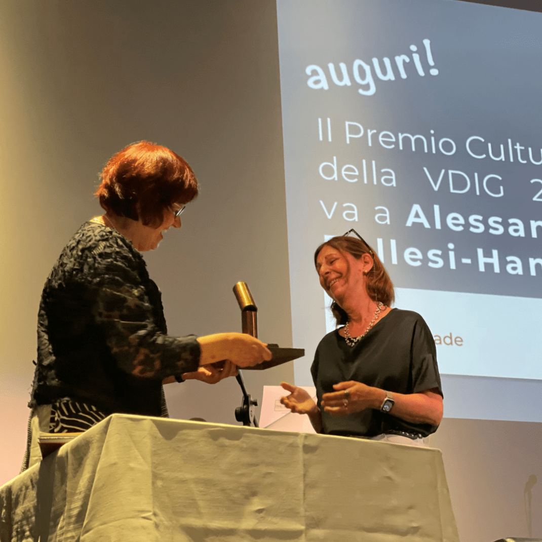Unsere Verlegerin Alessandra Ballesi-Hansen ist für ihre Verdienste um die deutsch-italienischen Kulturbeziehungen mit dem Premio Culturale 2024 ausgezeichnet worden. Dieser Preis wird von der Vereinigung Deutsch-Italienischer Kulturgesellschaften e.V. (VDIG) für besonderes interkulturelles Engagement verliehen.