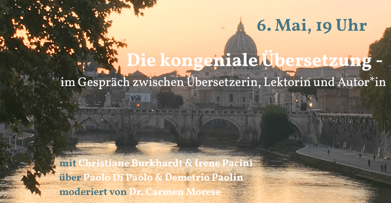 Am 6. Mai spricht Christiane Burkhardt mit der Lektorin Irene Pacini über ihre Übersetzungen der Werke von Paolo Di Paolo und Demetrio Paolin.